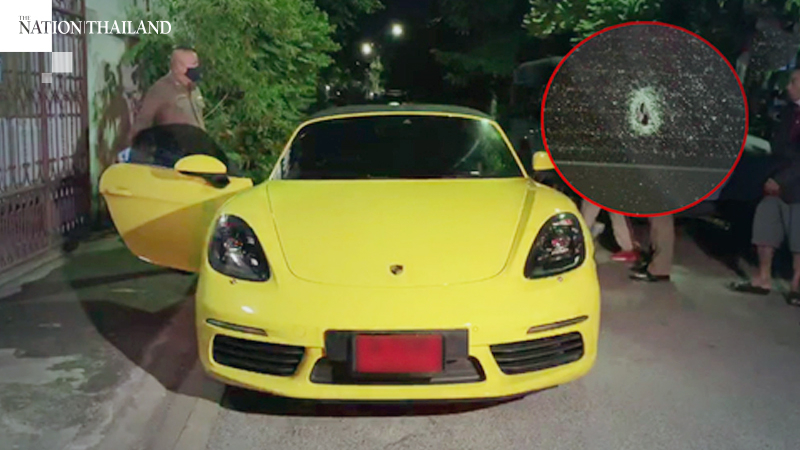 Lak Song police were informed early on Sunday (August 1) that a yellow Porsche was fired at many times before a house located in Bang Khae.