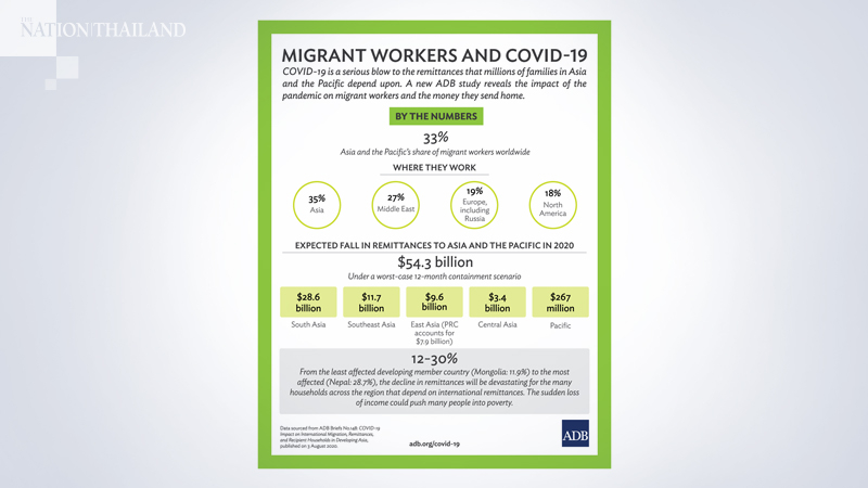 Covid-19 to slash Bt3.1trn from global remittances: ADB