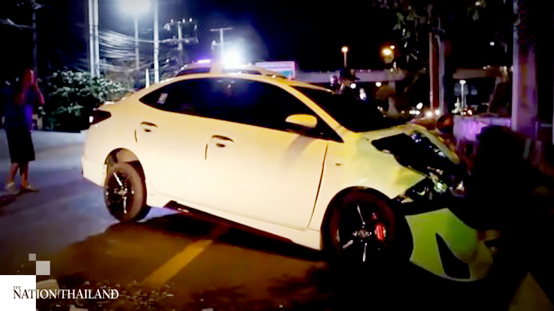 According to truck driver Surasak Kowmanee, 42, Banchuen’s car crashed into his vehicle when he decided to turn his trailer into the industrial estate. The car then continued moving and crashed again by the side of the road.