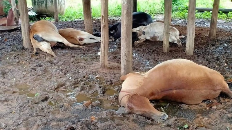 Bantao Jantarak, the farmer, said that the storm lashed her village for 30 minutes before the lightning killed seven breeders valued at Bt35,000 to Bt40,000 each in the market.