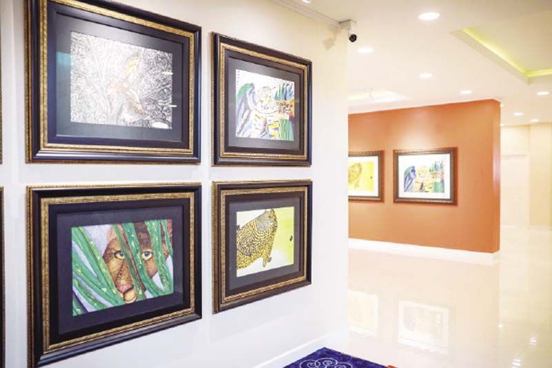 อีกหนึ่งพระอัจฉริยภาพของ ศาสตราจารย์ ดร.สมเด็จเจ้าฟ้าฯ กรมพระศรีสวางควัฒนวรขัตติยราชนารี องค์ประธานราชวิทยาลัยจุฬาภรณ์กับพระปรีชาสามารถด้านศิลปะโดยทรงสำเร็จการศึกษาหลักสูตรปรัชญาดุษฎีบัณฑิต สาขาวิชาทัศนศิลป์ คณะจิตรกรรม ประติมากรรม และภาพพิมพ์ มหาวิทยาลัยศิลปากร พร้อมทรงจัดแสดงนิทรรศการเพื่อเผยแพร่แก่สาธารณชนจำนวน 2 ครั้ง ณ หอศิลป์พิมานทิพย์ ต.โป่งตาลอง อ.ปากช่อง จ.นครราชสีมา ตามข้อกำหนดของหลักสูตรในชุด “หลากลาย หลายชีวิต” นิทรรศการผลงานวิทยานิพนธ์ภาพวาดฝีพระหัตถ์ที่ได้รวมพระอัจฉริยภาพด้านงานศิลปะกึ่งแฟนตาซีผสมผสานกับลักษณะของงานศิลปะแบบนาอีฟ (Naïve Art) หรืองานที่ไม่ใช้หลักทฤษฎีทางวิชาการของศิลปะใดๆ แต่สร้างสรรค์ออกไปตามสัญชาตญาณ และความรู้สึกภายในจิตใต้สำนึก ทรงใช้ “เสือ” เป็นสัญลักษณ์แทนความหมายของเจ้าป่า หรือพระราชา ซึ่งเปรียบเสมือนพระบาทสมเด็จพระบรมชนกาธิเบศรมหาภูมิพลอดุลยเดชมหาราช บรมนาถบพิตรรัชกาลที่ 9 ที่ทรงปกครองเหนือราชอาณาจักรของพระองค์ เป็นราชาผู้ปกครองดินแดนด้วยพระเมตตา ห่วงใยทุกข์สุขของอาณาประชาราษฎร์ตลอดเวลา ลวดลายของเสือยังปรากฏเป็นตัวอักษรสัญลักษณ์ DNA หรือชื่อย่อทางสารพันธุกรรมเทคโนโลยีชีวภาพ ทางด้านวิทยาศาสตร์ อันเป็นพระประสบการณ์ในด้านวิทยาศาสตร์ ของสมเด็จเจ้าฟ้าฯ กรมพระศรีสวางควัฒน วรขัตติยราชนารี มาผสมผสานกับจินตนาการจากจิตใต้สำนึก ตามบริบทแวดล้อม เพื่อถ่ายทอดอารมณ์ ความรู้สึกผ่านรูปทรงและความหมายของพื้นที่ต่างๆ ที่ทรงคุ้นเคย ผ่านลายเส้นที่ทรงวาดลงบนผืนกระดาษที่แสดงถึงความแม่นยำ เด็ดเดี่ยว เคลื่อนไหว มีชีวิตมีลมหายใจ มีจิตวิญญาณ เพื่อส่งต่อความฝันความรู้สึกที่เปี่ยมไปด้วยความรักต่อตนเอง ครอบครัว ราษฎรชาวไทยไปจนกระทั่งผู้คนในโลกนี้ได้อย่างเต็มที่