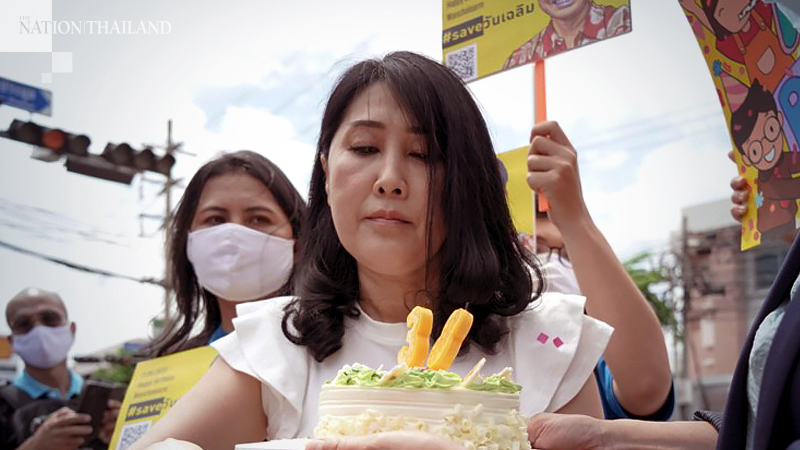 The family today took the opportunity to celebrate Wanchalearm’s birthday with cake and cookies that they shared with Embassy staff, police, press and passers-by in front of the Cambodian mission.