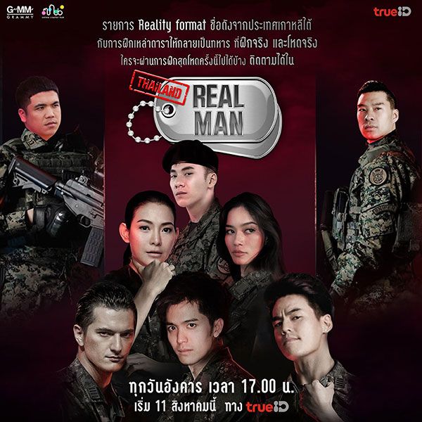 รายการ ‘Real Man Thailand’ รายการที่จะนำเอาศิลปิน ดารา มาเป็นทหาร!! ไม่ใช่แค่บทบาท แต่ต้องมาฝึกจริง ในค่ายทหาร ที่เต็มไปด้วยระเบียบวินัย ความโหด ที่ทุกคนต้องอดทนและผ่านทุกบททดสอบของการฝึกทหารไปให้ได้ โดยมีศิลปิน ดาราทั้งหมด 8 คน แจ๊ก แฟนฉัน, ฮั่น อิสริยะ, ชิน ชินวุฒ, ติช่า กันติชา,ตั้ม วราวุธ,ตั้ว เสฎฐวุฒิ, โย ยศวดี และ หยวน นิธิชัยสามารถติดตามชมบรรยากาศการฝึกทหารของเหล่าคนดัง ได้ในรายการ “Real Man Thailand” ทุกวันอังคาร เวลา 17.00 น. เริ่มตอนแรกวันอังคารที่ 11 สิงหาคมนี้ ทาง TrueID ทั้งแอป, เว็บ และกล่อง TrueID TV