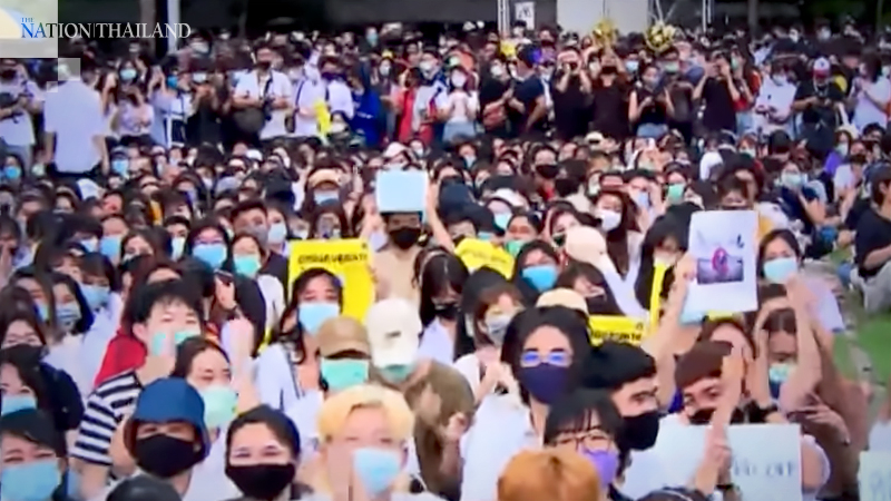 Students rallied at Thammasat University’s Rangsit Campus on Monday (August 10) to demand reform of Thai politics.