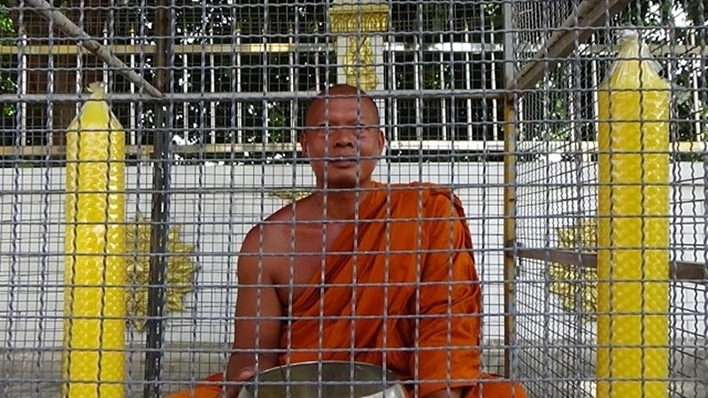 The abbot of Wat Kho Suppharat temple in Angthong province locked himself in a cage at 10am on Thursday (August 13) after officials from the Supreme Sangha showed up to punish him for allegedly disturbing locals with his loud sermons.