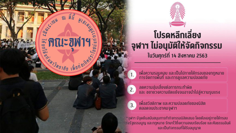 After acknowledging the announcement, the Khana Chula announced the political event would go ahead from 4pm on campus in front of statues of King Rama V and VI.