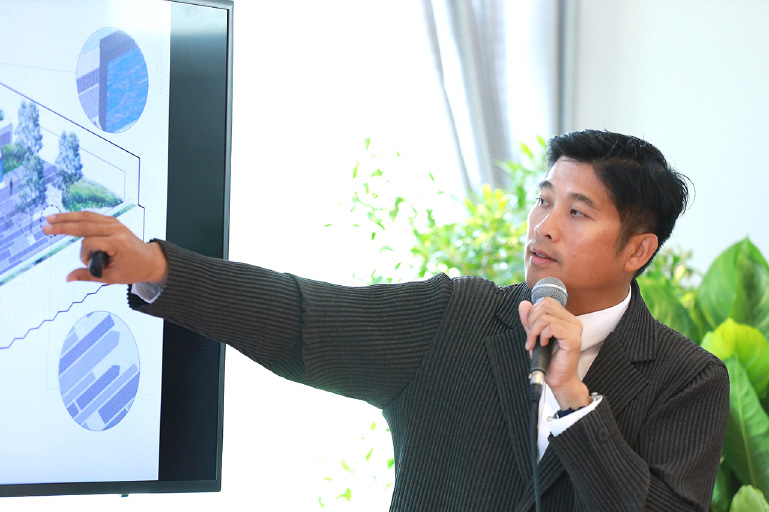 ศุภจี สุธรรมพันธุ์ ประธานเจ้าหน้าที่บริหารกลุ่ม ดุสิต อินเตอร์เนชั่นแนล กล่าวว่า “เรามีความตั้งใจที่จะอุทิศพื้นที่ส่วนหนึ่งของโครงการให้มีความใกล้ชิดกับธรรมชาติ เปรียบเสมือนสวนสาธารณะอีกแห่งหนึ่งในกรุงเทพฯ ที่ทุกคนสามารถเข้ามาพักผ่อนหย่อนใจ หรือทำกิจกรรมต่างๆ ร่วมกันได้เราจึงได้นำโจทย์นี้ไปคุยกับทางแลนด์สเคปคอลลาบอเรชั่น เพื่อให้ทางผู้เชี่ยวชาญได้สร้างสรรค์พื้นที่ส่วนนี้มาใช้ให้เกิดประโยชน์สูงสุดแก่ทุกคนที่มาเยือน ซึ่งโจทย์ที่เราให้ไปนั้นมิใช่เพียงแค่การสร้างสวนสีเขียว หรือการปลูกต้นไม้เท่านั้น แต่ต้องพิจารณาไปถึงรายละเอียดของแต่ละพรรณไม้ที่จะนำมา ปลูกในโครงการ รวมไปถึงองค์ประกอบต่างๆ ที่จะนำมาจัดวางร่วมกัน เพื่อให้สามารถงานได้จริง สวยงาม และเกิดประโยชน์ที่ยั่งยืนต่อสังคม”
