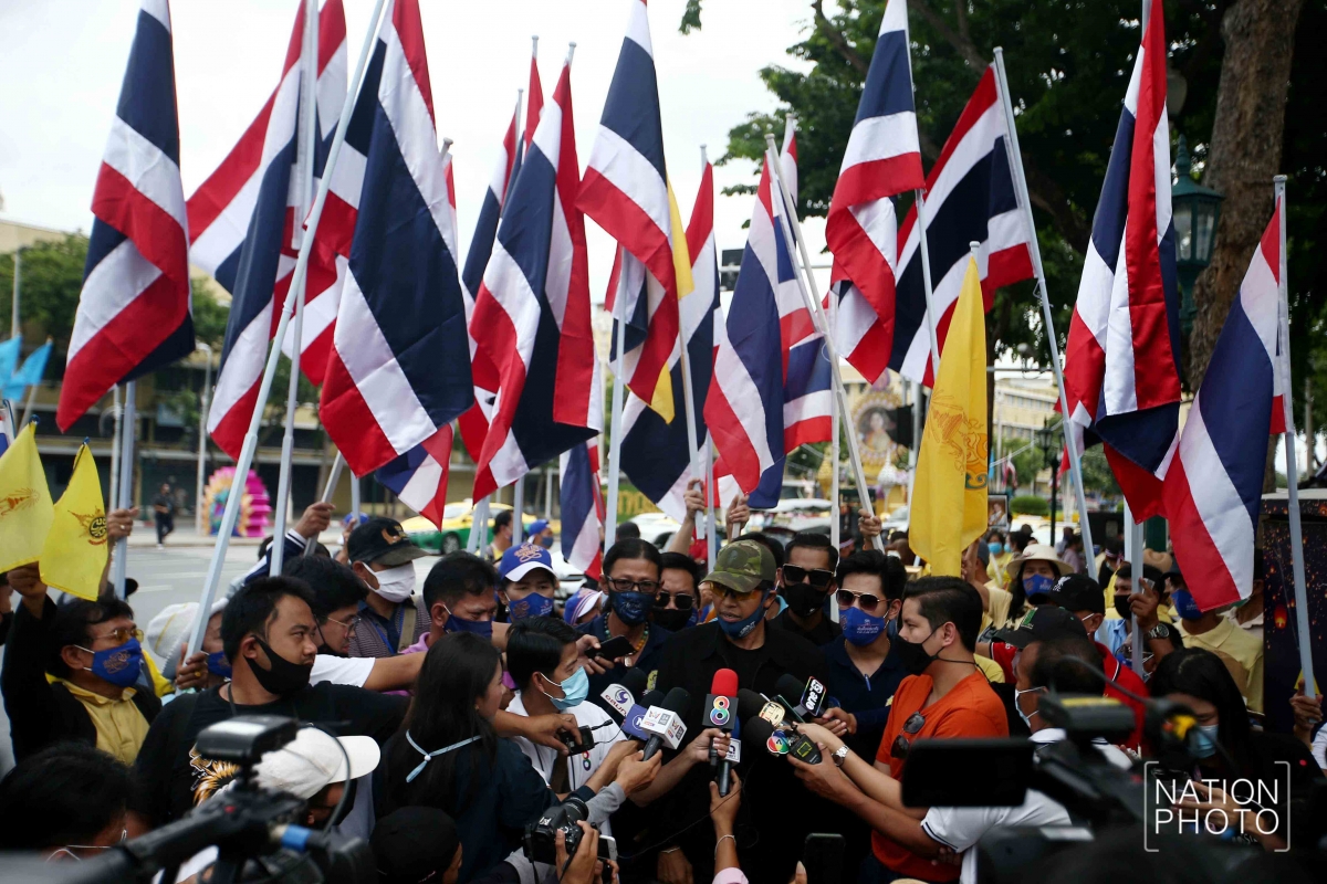 The royalist Coordination Centre for Vocational Students and People Protecting the Institution held a rally at Bangkok’s Democracy Monument on Sunday morning (August 16).