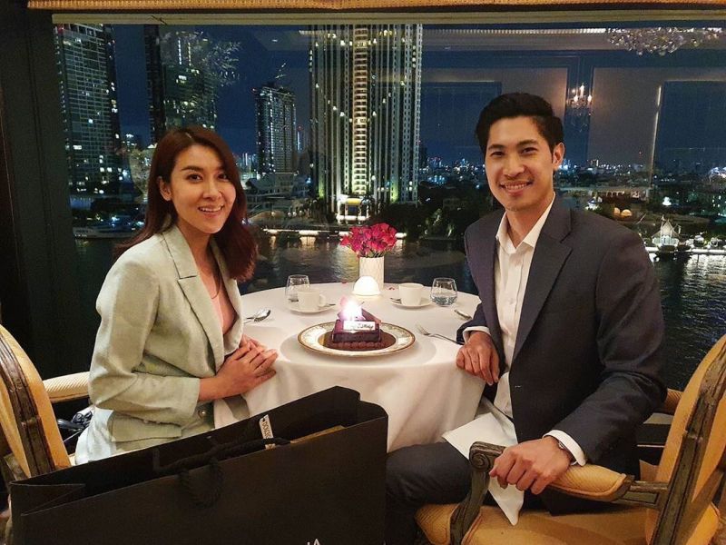 เชียร์ : คือเขาไม่สนใจเราจากข่าว หรือ จากอะไรเลยค่ะ คือ มันมีอยู่ช่วงหนึ่งที่เรามีโอกาสได้คุยกันมากขึ้น แบบด้วยคราสเรียนคือ ทุกคนเป็นเพื่อนใหม่กันทั้งหมด แล้วคือ มีช่วงหนึ่งที่เราต้องไปต่างประเทศด้วยกัน แล้วจังหวะบินกลับมาเหตุการณ์จับพลัดจับผูล เหมือนละครจับวางเลยค่ะ จับมาให้นั่งคู่กัน แล้วจริงๆกับมาสามคนจริงๆเราจะขอนั่งด้วยกันแต่ที่มันไม่ได้แล้วเหลือแค่เชียร์ นั่งกับเขาแบบนี้ แล้วคนนี้ก็นั่งคนเดียว แล้วเราก็ขอให้เขาสลับตั๋วขอให้เพื่อนเรามานั่ง เขาก็ไม่ยอม มันเลยกลายเป็นเรานั่งคู่เขามาตลอดทางเลย เลยทำให้มีโอกาสได้คุยกัน เขาก็บอกว่าเขาเริ่มประทับใจเราตั้งแต่ตอนนั้น แต่ตอนนั้นเชียร์ยังไม่ได้คิดอะไรนะคะ