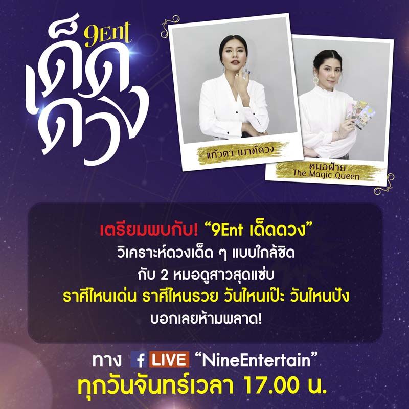 ติดตามชม รายการ “9Ent เด็ดดวง” ทุกวันจันทร์ เวลา 17.00 น.ทางช่อง 9 MCOT HD 30 และ Facebook Live NineEntertain