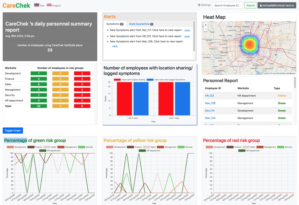 Through the platform dashboard, organisation admin officials receive near real-time information of the risk assessed by the platform’s algorithm, allowing them to manage personnel more effectively to prevent the virus from spreading.