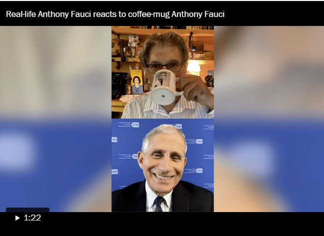 Q: I’m drinking from a Dr. Fauci mug. I assume you’re not receiving any residuals from all of the products out there?