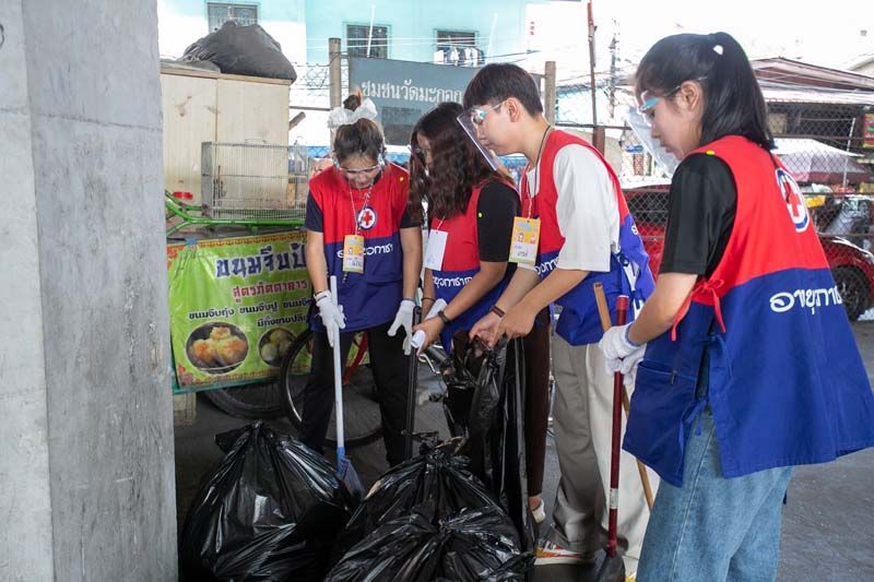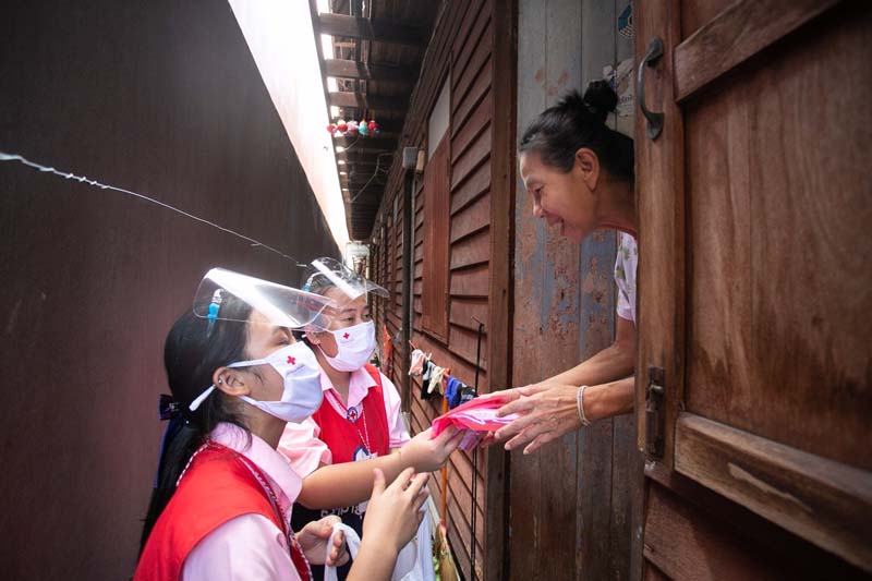 สำนักงานยุวกาชาด สภากาชาดไทย รวมพลังอาสายุวกาชาด กว่า 150 คน ร่วมกับประชาชนเขตพญาไท จัดกิจกรรมในโครงการ “อาสาพาพิชิต พ้นโควิด-19” ในวันเสาร์ที่ 22 สิงหาคม2563 ณ ชุมชนวัดมะกอกกลางสวน เขตพญาไท กรุงเทพฯ