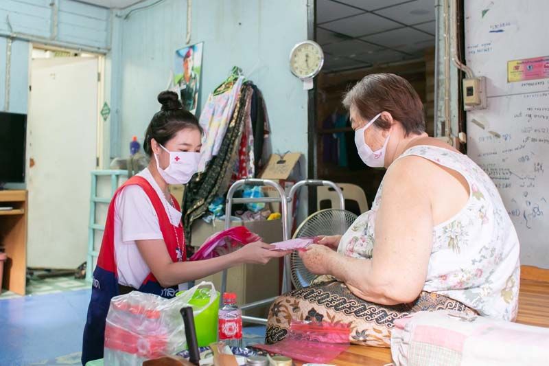 ทั้งนี้ ในส่วนของชมรมอาสายุวกาชาดส่วนกลางนั้น ได้มีโอกาสลงพื้นที่แจกหน้ากากอนามัยแบบผ้า ในชุมชนเขตพญาไท บางรัก ปทุมวัน กรุงเทพมหานคร และได้พบกับสภาพปัญหาต่างๆของชุมชน ในด้านการดูแลสุขภาพอนามัยของตนเอง ความรู้ความเข้าใจในการป้องกันตนเองจากโรคระบาด การเกิดภาวะความเครียดของประชาชนที่ได้ผลกระทบจากสถานการณ์ดังกล่าว