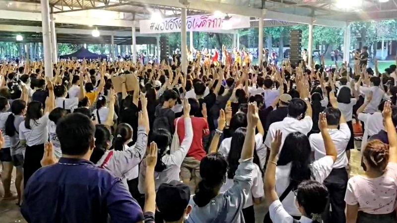 Watcharapat Thammachak, 22, president of the Law Faculty’s students club, said the rally’s aim was to continue pushing the government to meet three demands – dissolve Parliament, rewrite the Constitution and stop intimidating the public.