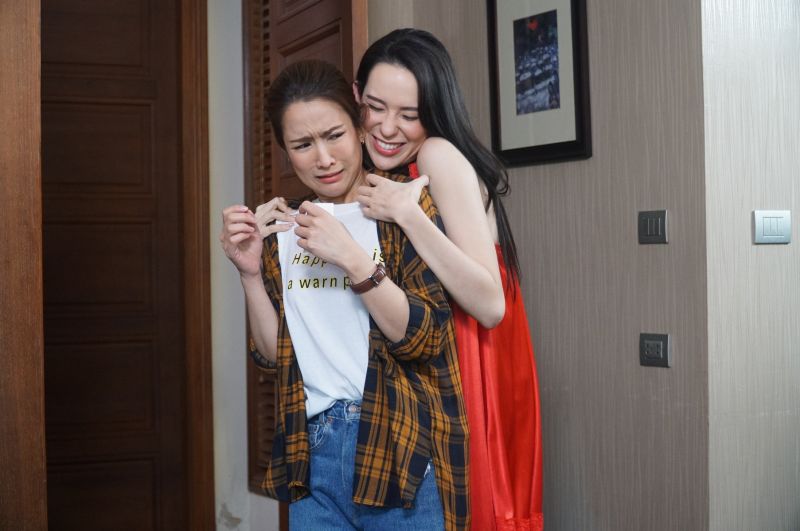 เบื้องหลังฉากนี้ทีมงานยกกองไปถ่ายทำกันที่ หมู่บ้านศริญญา บางใหญ่ เป็นอีกหนึ่งฉากที่ทั้งฮา ทั้งป่วนเพราะเป็นศึกระหว่างสองคนรัก นั่นคือ มะลิ และจั๊กจั่น งานนี้พอจั๊กจั่นเห็นชุดนอนสีแดงเพลิง เว้าหลัง แหวกหน้าของมะลิ ถึงกับแซวว่า หูว ชุดน้องมะลิทำพี่ไม่มีจุดยืนในกองเลยอะ ฮ่า ๆ ส่วนมะลิ พอรู้ว่าต้องโดนจั๊กจั่นเอากรรไกรไล่ตัดชุดรีบหันไปเช็ค กรรไกรเลยว่า พี่ ๆ อย่าลืมลบคมให้หนูด้วยนะ จั๊กจั่นเลยบอกว่า ไม่ต้องห่วงจ้าน้องพี่ จะเล็งไม่ให้พลาดแน่นอน อิอิ ด้านแม่ผัวอย่าง แม่ตุ๊กดวงตา ที่งานนี้มาคอยห้ามศึก ก็ต้องรับฝีปากกับจั๊กจั่น แถมบทยาวเป็นหน้า ๆ แม่ตุ๊กบอกว่าหายห่วงแค่นี้สบายมาก ส่วนไนกี้ ยังไม่ทันอ้าปากพูดก็โดนจั่นแซวว่า อย่ามองชุดมะลิเพลินจนลืมพูดบทหล่ะไนกี้ แหมโดนดักคอซะงั้น ฮ่าๆ หลังจากที่ ผู้กำกับ ภูมิภัทร สังวาลวรกุล เรียกนักแสดง มาซ้อมคิวต่อบทจนเป๊ะถ่ายจริง เริ่มที่ มะลิ นอนยั่วยวนบนเตียง ทันใดนั้นได้ยินเสียงคนเข้ามาในห้องมะลิเลยรีบแอบกระโจนเข้ากอด ทำเอามะลิกรี๊ดลั่นห้องเพราะคนที่กอดนั่นคือจั๊กจั่น เรียกว่าต่างคนต่างกรี๊ดบ้านแตก จั๊กจั่นจับไต๋มะลิได้ว่ามะลิกะจะเข้ามารวบหัวรวบหางไนกี้จึงหมั่นไส้ คว้ากรรไกรวิ่งไล่ตัดชุด แม่ตุ๊ก และไนกี้ได้ยินเสียงดังโวยวายจึงรีบเข้ามาห้าม และชี้หน้าด่าจั๊กจั่น แต่อีกใจก็แอบตกใจในสภาพชุดของมะลิ สิ้นเสียงคัททำเอา มะลิพูดว่า เห็นปลายแหลมของกรรไกรตอนที่พี่จั่นวิ่งไล่แล้วดิฉันหละเสียววาบเลยจ้า ฮ่า ๆ ติดตามชมฉากฮา ๆ นี้ได้ในวันจันทร์ที่ 31 สิงหาคม เวลา 19.00 น. ทางช่อง8 กดเลข 27