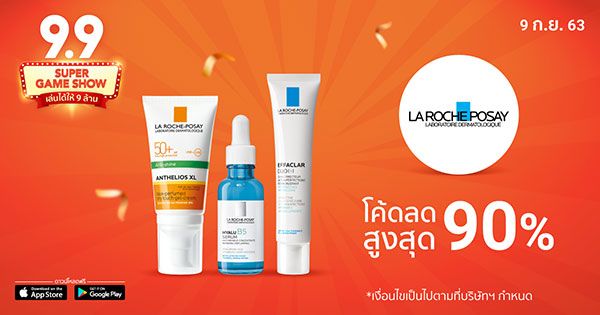 ตั้งแต่วันที่ 20 สิงหาคม – 9 กันยายน 2563 พร้อมผิวสวย หน้าใส ไปกับโปรเลอค่าในแคมเปญ Shopee 9.9 Super Shopping Day ที่สินค้าภายใต้แบรนด์ลาโรช-โพเซย์ จะมาลดราคาทั้งร้านสูงสุดถึง 50% พร้อมแจกโค้ดลดเพิ่มสูงสุด 15% ให้ไปช้อปกันแบบจุกๆ ห้ามพลาด! กับ Flash Voucher ลดแรงสูงสุดถึง 90% ที่จะมาแจกให้กับเหล่านักช้อปมือไว กันทุกๆ สองชั่วโมงไม่เพียงเท่านี้นักช้อปยังสามารถเพิ่มความคุ้มค่าด้วยโปรโมชั่นและโค้ดส่วนลดพิเศษเพิ่มเติมอาทิโค้ดส่งฟรีไม่มีขั้นต่ำโค้ดส่วนลดสูงสุด90% จากAirPayWalletและอื่นๆอีกมากมาย