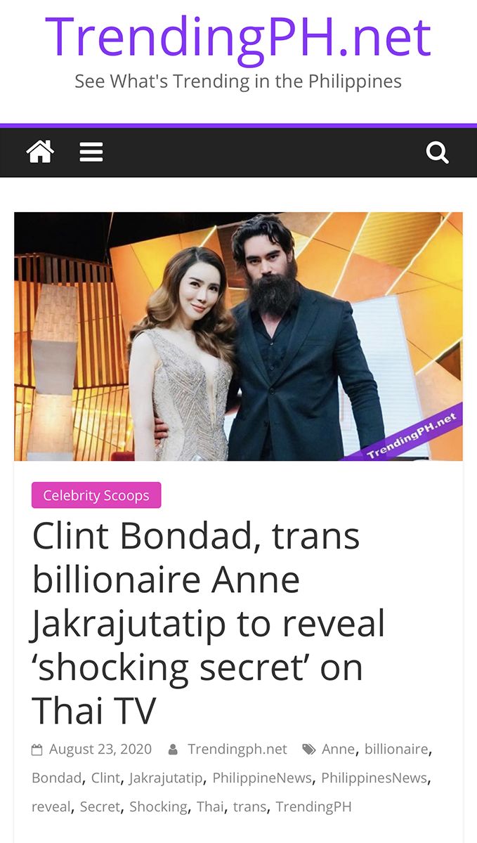 แอน จักรพงษ์ จักราจุฑาธิบดิ์ ประธานเจ้าหน้าที่บริหารและกรรมการผู้จัดการ บริษัท เจเคเอ็น โกลบอล มีเดีย จำกัด (มหาชน) หรือ JKNที่เราคุ้นเคยกันดีในนามของ#ข้ามเพศพันล้าน และ #เจ้าแม่คอนเทนต์แห่งเอเชีย ล่าสุด เป็นเรื่องราวใหญ่โต ข้ามประเทศ เป็นข่าวดังไกลข้ามโลกสื่อฟิลิปปินส์จับตามองเห็นตัวติดสนิทกันกับศิลปินในสังกัด ที่ชื่อ “คลิ้นท์บอนแดด”อดีตหวานใจ แคทรีโอน่า เอลิซา มักนายอน เกรย์ มิสยูนิเวิร์ส ปี 2018 ชาวฟิลิปปินส์ ที่ปัจจุบันใส่คอนเวิร์ส และ มูฟออน ไปมีรักใหม่เป็นที่เรียบร้อย
