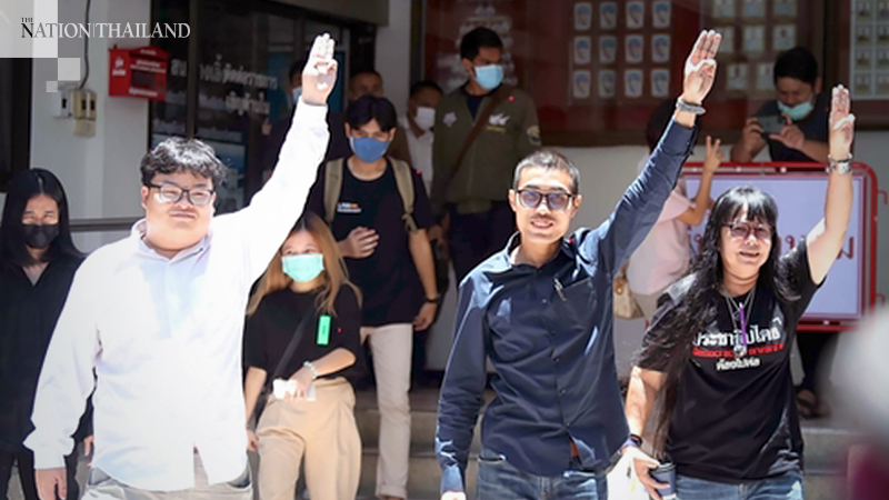 Four political activists, namely human-rights lawyer Arnon Nampa, Suwanna Tanlek, Parit Chiwarak and Piyarat Jongthep, visited the Nang Loeng Police Station in Bangkok on Tuesday (August 25) to acknowledge charges related to their protest outside Army headquarters on July 20.