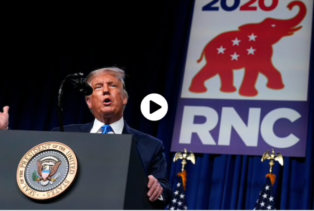 Earlier in the evening, a video montage touted Trump’s actions to mitigate the pandemic and played selectively edited clips of some Democratic leaders expressing appreciation for him, even though those officials have also been critical of Trump.