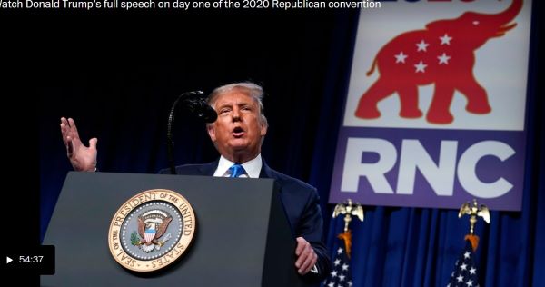 Other speakers at the convention – including conservative organizer Charlie Kirk and the St. Louis couple who emerged from their mansion and aimed weapons at racial-justice protesters – amplified the president’s assertions that America would become a hellscape if Biden won.