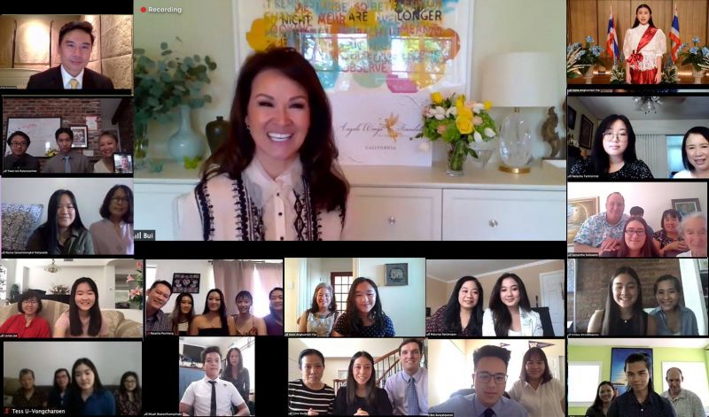 ปุ๋ย-ภรณ์ทิพย์ ไซมอน ประธานและผู้ก่อตั้งมูลนิธิแองเจลส์ วิงส์ อินเตอร์เนชั่นแนล ประกาศรายชื่อนักเรียนที่สำเร็จการศึกษาในระดับชั้นมัธยมปลาย 52 คน ได้รับทุนการศึกษาในโครงการทุนการศึกษานักเรียนไทยในสหรัฐอเมริกาโดยมูลนิธิแองเจลส์ วิงส์ อินเตอร์เนชั่นแนล ประจำปี 2020