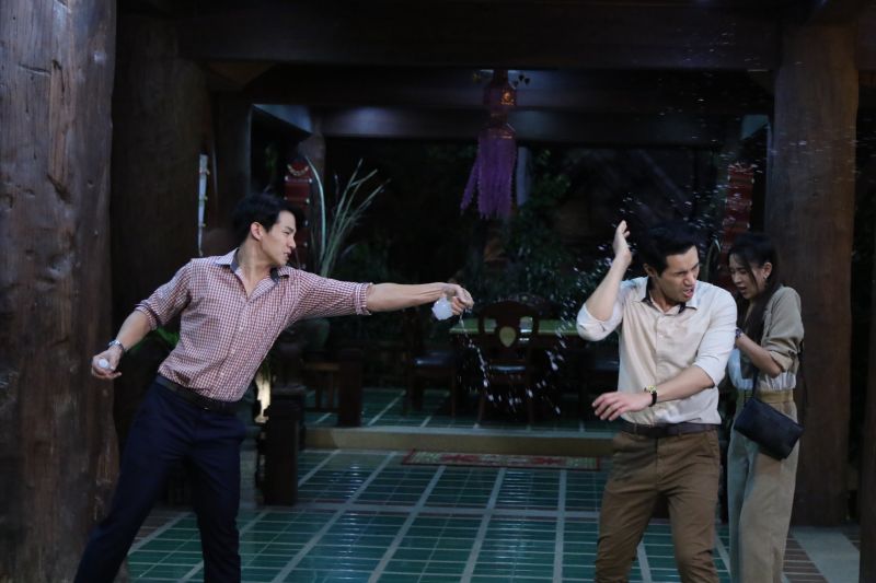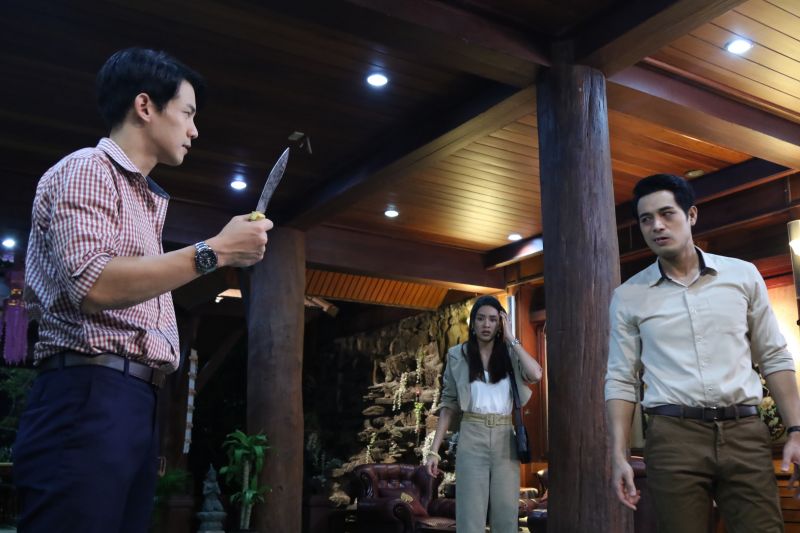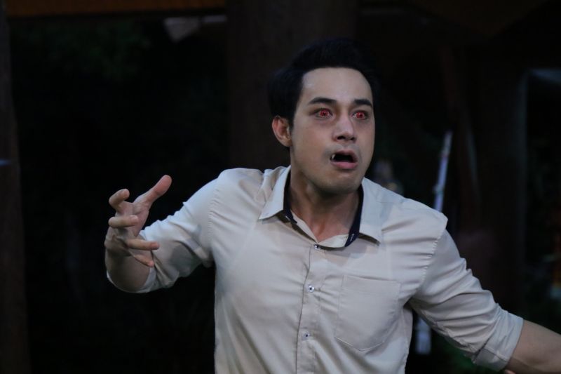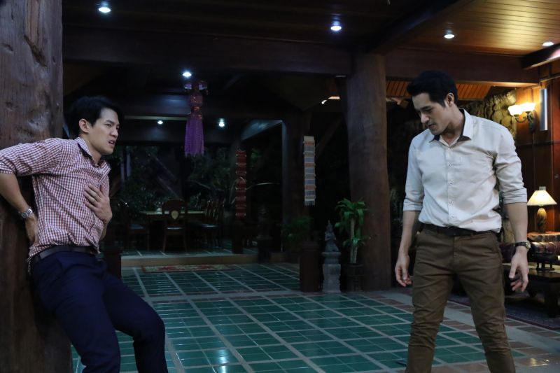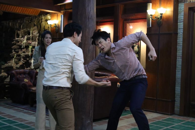 เบื้องหลังฉากนี้ทีมงานยกกองไปถ่ายทำที่เรือนทิพย์พิมาน นนทบุรี เป็นอีกหนึ่งซีนใหญ่ที่สำคัญของเรื่อง ที่ครบรสมาก ๆ โดยเฉพาะ สองหนุ่ม โอมและภูมิที่ฉากนี้ต้องมาบู๊กัน อีกทั้งโอมต้องเป็นผีดิบ ใส่คอนเทคเลนส์ ติดเขี้ยว ด้วย ซึ่งขั้นตอนการถ่ายทำต้องนานและเนี๊ยบเป็นพิเศษ แต่สองหนุ่มบอกสู้ตาย ด้านสาว ๆ ก็ไม่ได้เหนื่อยน้อยกว่าหนุ่ม ๆ สักเท่าไหร่ ทั้งเบนซ์ และ อร ต้องแสดงอารมณ์ดราม่า ร้องไห้จัดเต็ม ส่วนสาวมิ้นท์ ซีนนี้ต้องแปลงกายเป็นผีดิบมาสู้กับหนุ่มโอมด้วย มวยถูกคู่มาก ฮ่า ๆ ดูจากขนาดตัวแล้ว ไม่ต้องสู้ก็รู้เลยใครจะชนะ อิอิ ถึงเวลาผู้กำกับ วิชิต วัฒนานนท์ เรียก นักแสดงทั้งหมดมาซักซ้อมคิวต่อบทกัน ซึ้งมีทั้งคิวบู๊ คิวดราม่าเยอะแยะมากมาย ด้านหนุ่ม ๆ ก็ต้องบู๊กันระวังมากเพราะพื้นค่อนข้างลื่นบวกกับต้องใช้อาวุธมีดด้วย จึงต้องทวนคิวและเซฟที่สุดเมื่อคิวเป๊ะถ่ายจริงเริ่มที่โอมกำลังเดินเข้าคุ้มมากับเบนซ์ ภูมิโผล่พรวดเข้ามาไม่รอช้าสาดน้ำมนต์ใส่หน้าโอม โอมร้องลั่น เบนซ์ตกใจเข้าไปถามอาการแต่ก็ต้องตกใจกรี๊ดสุดเสียง เมื่อเห็นโอมกลายร่างเป็นผีดิบคาตา เบนซ์ร้องไห้ทั้งสั่นทั้งกลัว โอมโกรธจัดตรงเข้าไปต่อยและบีบคอภูมิไม่ยั้งเพราะแค้นที่คิดจะมาทำร้ายตนก่อน จนมิ้นท์ในร่างผีดิบเข้ามาขวางแต่สู้พลังไม่ไหว สุดท้าย อรก็ต้องมาคุกเข่าขอร้องทั้งน้ำตาให้ไว้ชีวิตลูกของตน สิ้นเสียงคัท สาว ๆ ร้องไห้กันตาบวม เรียกว่าเป็นอีกซีนที่ครบรสและไม่ควรพลาดเลยทีเดียว ติดตามชมฉากนี้ได้ในวันจันทร์ที่ 31 สิงหาคมนี้ เวลา 20.20 น. ทางช่อง8 กดเลข 27