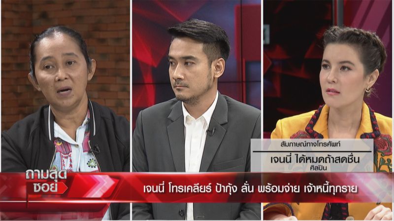 เจนนี่ : “หนูขอคุยหลังบ้านได้มั้ยคะเรื่องรายละเอียดทั้งหมด คือหนูไม่รู้ต้นสายปลายเหตุว่าคืออะไร จริงๆ หนูบอกแล้วหนูพร้อมเคลียร์ แต่ไม่ขอผ่านสื่อก็ได้ค่ะ แต่หนูพร้อมเคลียร์ ขออนุญาตแจ้งในรายการไม่ใช่แค่ป้ากุ้งนะคะ เจ้าหนี้คนอื่นๆ ถ้ามีหลงเหลืออยู่ สามารถติดต่อหนูมาได้เลย ถ้าเรามีหลักฐานและคุณแม่จำได้ เราก็โอเคที่จะจ่าย แต่ที่เราต้องขอหลักฐาน เพราะเราเคยเจอบางคนแอบอ้างมาแล้วเหมือนกันค่ะ”