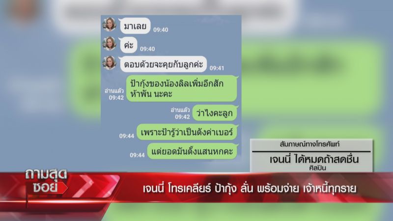 เจนนี่ : “แล้วป้ากุ้งบอกว่าป้ากุ้งโอเคกับยอดตรงนั้นแล้ว ใช่มั้ยคะ คือคุยกันทางไลน์หนี้สินเราจบไปแล้วใช่มั้ยคะ”