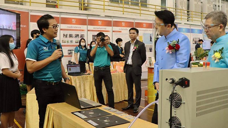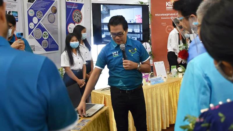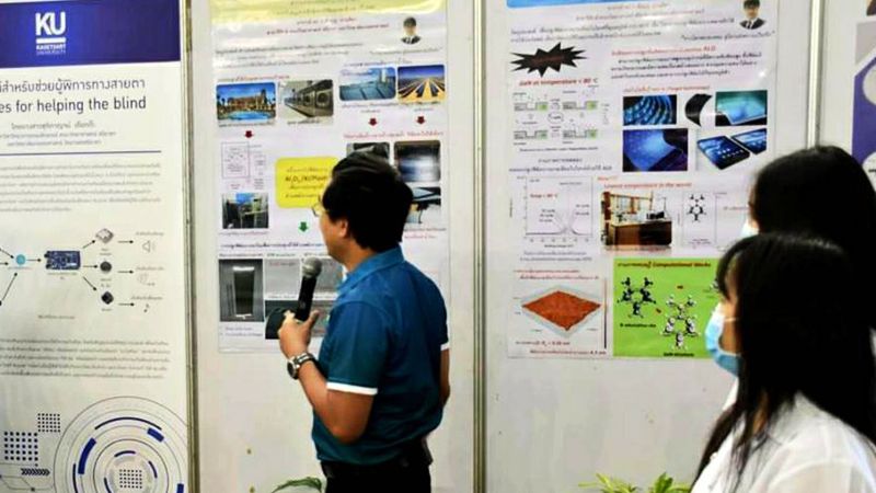 บรรยากาศภายในงานได้มีการจัดแสดงงานวิจัยที่น่าสนใจมากมายจากคณะต่างๆ แต่ที่สุดของงานที่พลาดไม่ได้ คือ ผลงานวิจัยของ “โมมาร์แตง” หรือ “ผู้ช่วยศาสตราจารย์ ดร.ภ.พึ่งบุญ ปานศิลา” อาจารย์ประจำคณะวิทยาศาสตร์ สาขาฟิสิกส์ ที่นำเสนอผลงานวิจัยสุดเจ๋ง“ฟิล์มบางของแข็งระดับนาโน” ที่สามารถนำไปประยุกต์ใช้กับงานด้านพลังงาน ด้านการแพทย์ เครื่องประดับ และงานอิเล็กทรอนิกส์ต่างๆ เพื่อใช้ในอนาคต ตลอดจนงานด้านการเกษตรอีกด้วย เรียกได้ว่าไม่ธรรมดาจริงๆ!! กับศิลปิน นักร้องดีกรีดอกเตอร์ผู้นี้ที่ไม่ได้มีดีแค่งานด้านศิลปะการแสดง หรืองานด้านพิธีกรเท่านั้น ด้านวิชาการงานวิจัยก็เป็นหนึ่งระดับประเทศอีกด้วย ผลงานวิจัยที่ไม่ธรรมดาสามารถก้าวเข้าสู่ระดับสากลได้อย่างไม่ยาก