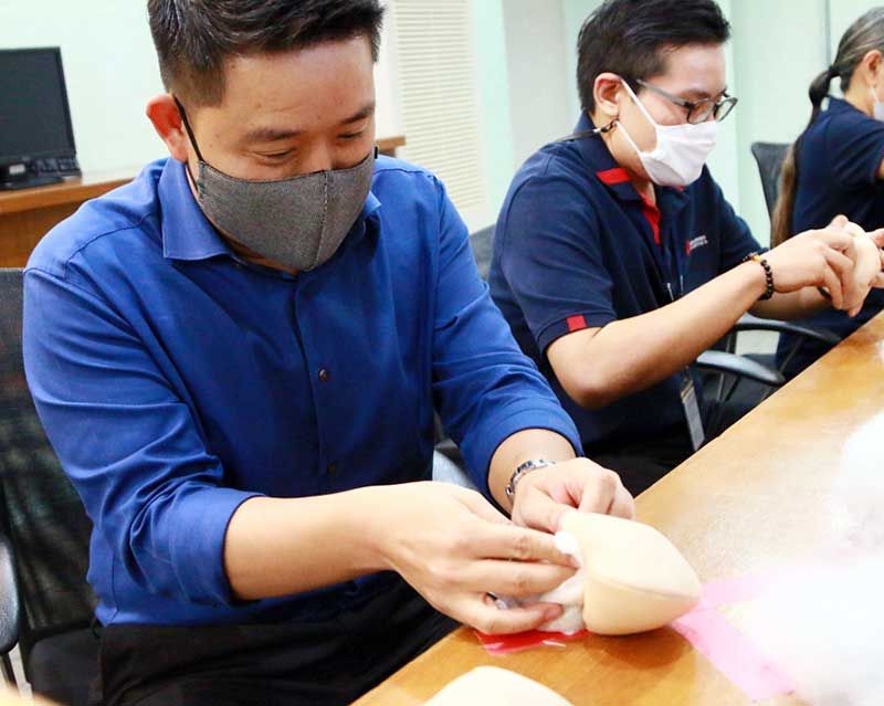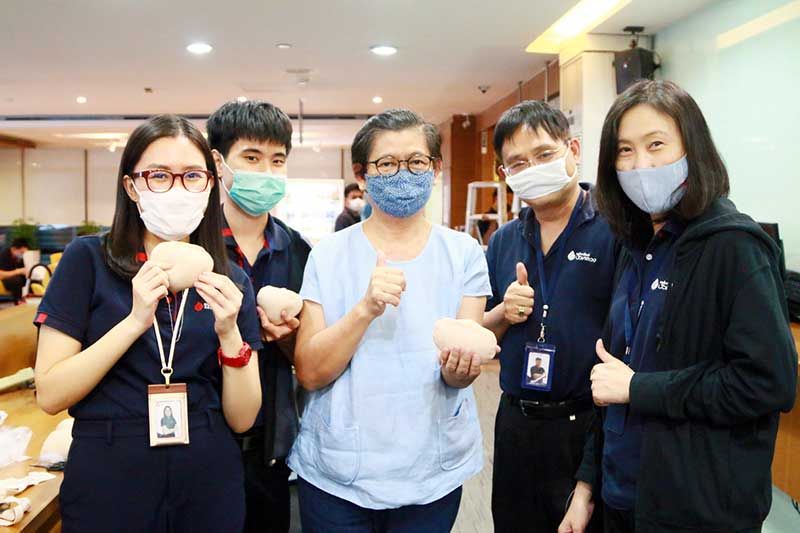 พนักงานจิตอาสาของ บล.บัวหลวง ร่วมกิจกรรมดีๆ “รับเดือนวันแม่ บัวหลวงชวนเย็บเต้านมเทียม” โดยร่วมกับกลุ่มเพื่อนทอฝัน รพ.พระมงกุฎเกล้า มาร่วมกันทำเต้านมเทียม