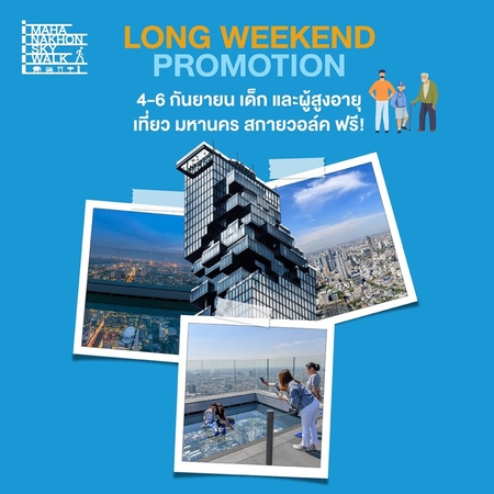 In a move to mark the upcoming long weekend, King Power Mahanakhon is granting free access to its famous Mahanakhon Skywalk to adults above the age of 60 and youngsters below 18 with every purchase of a Bt880 ticket.