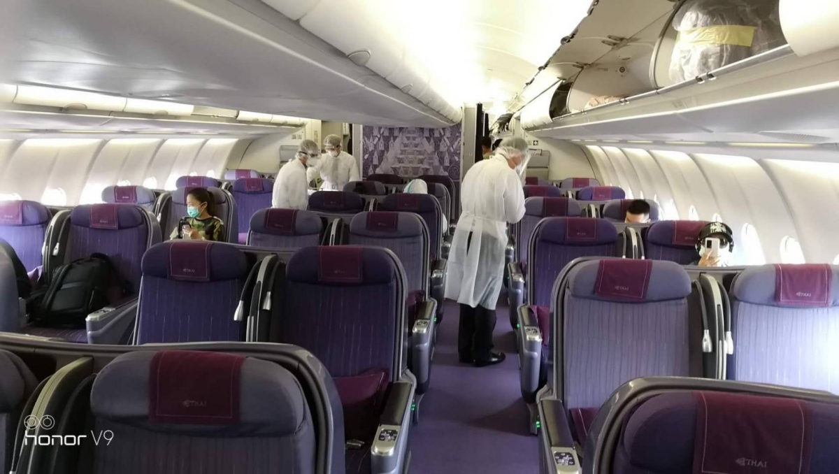 In the first repatriation flight from Chengdu, TG8091 landed in Suvarnabhumi on Monday evening with 10 Thai nationals.