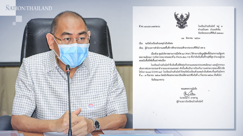Two schools in Prachuap Khiri Khan province have been instructed to cancel classes for a week after it was discovered that many migrant students and their guardians had visited their country by crossing the natural borders.