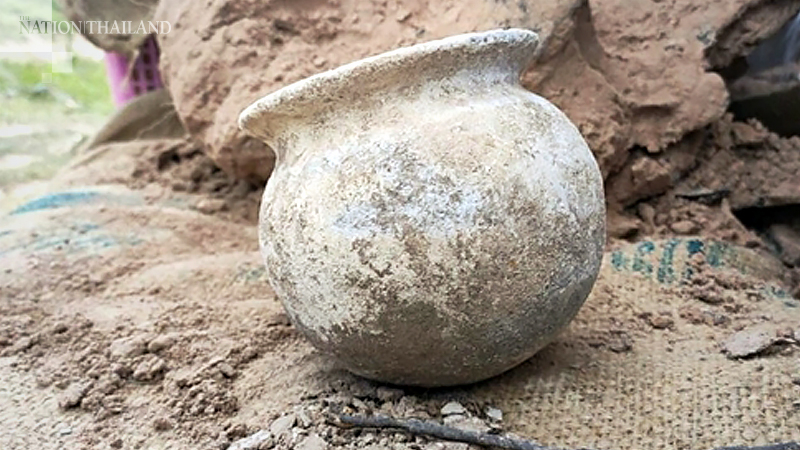 Muay Maichai, 60, the first person who stumbled upon the items, said she always visited the area. On Saturday, she saw a part of the jar sticking out from under the soil, so she decided to dig it up. Later, she discovered human bones nearby.