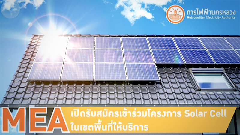 The Metropolitan Electricity Authority (MEA) is inviting households in Bangkok, Nonthaburi and Samut Prakan to install solar panels on their roofs to generate electricity for personal use or to sell back to the MEA.