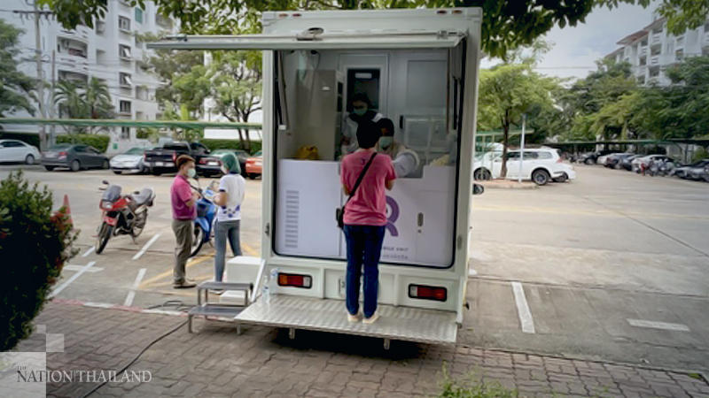 The Urban Institute for Disease Prevention and Control took a biosafety mobile unit to conduct Covid-19 tests on people living in a Baan Suan Thon Phuttha Bucha condominium building in Bangkok’s Thungkhru district on Saturday, after a man tested positive earlier in the week. It was the first domestic case in Thailand in over a 100 days.
