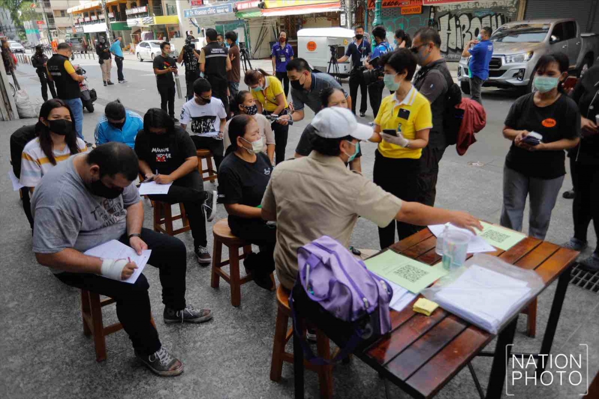 Biosafety mobile units travelled to Khaosan Road, offering free Covid-19 tests to people who are at risk after a patient reportedly visited entertainment venues near Bangkok’s famous neighbourhood during the last 14 days.