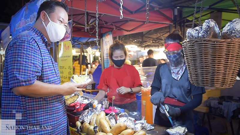 The Train Night Market in Srinakarin is an example of a hotspot for street food. It takes up a huge area in the eastern suburbs of Bangkok. This is where a community of food lovers meet. There are so many stalls selling plenty of food for you to buy and taste. Enjoy your choices while wandering around or find a seat to eat your street food treats. There are over 100 stalls arranged in neat rows. The atmosphere is back to being vibrant once again, as Thais have gotten accustomed to the new normal way of life. “We have been able to control and manage the spread of COVID-19 because Thais have been cooperative – we physically distance ourselves and sit some distance apart. Everyone is seen wearing masks which prevents the transmission of the virus among shop owners as well as customers,” the Governor says.