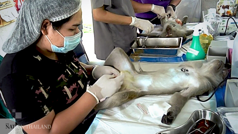 The project to solve the monkey problems in Songkhla, Surat Thani and Nakhon Si Thammarat province is being conducted from September 7-16. The goal is to castrate 400 monkeys. Until Sunday, 200 monkeys had undergone the operation.