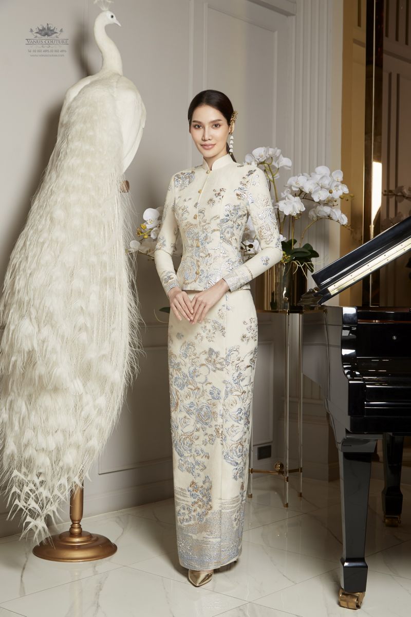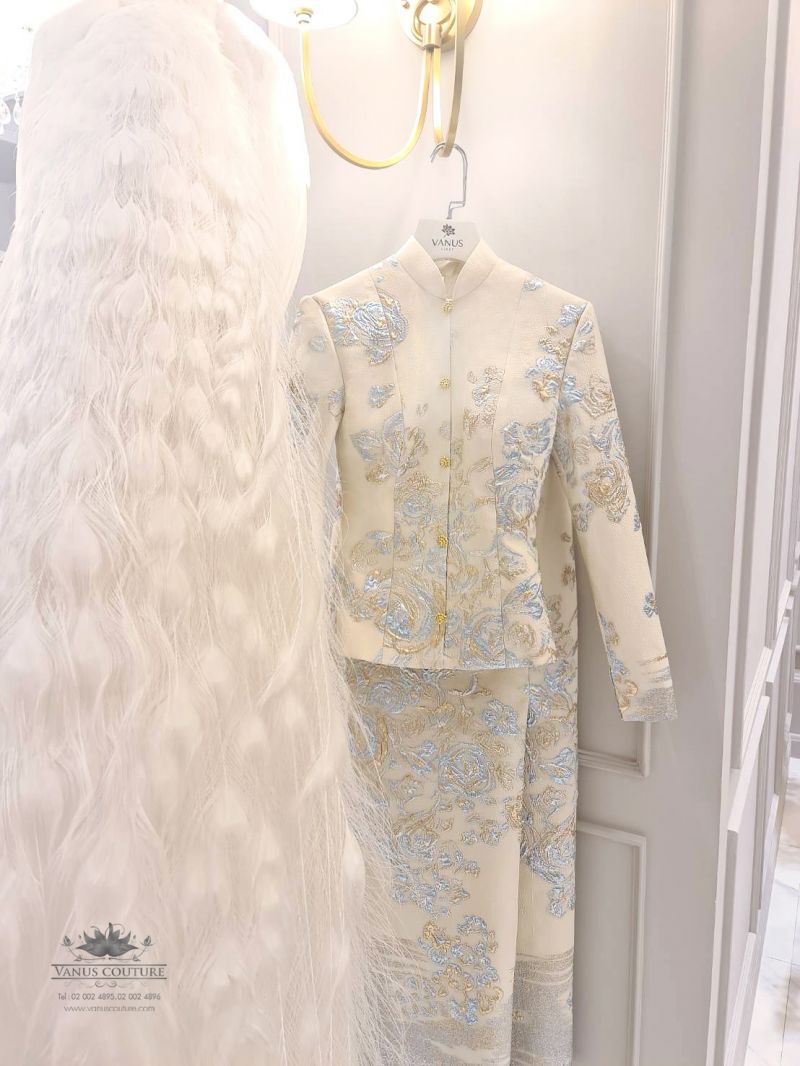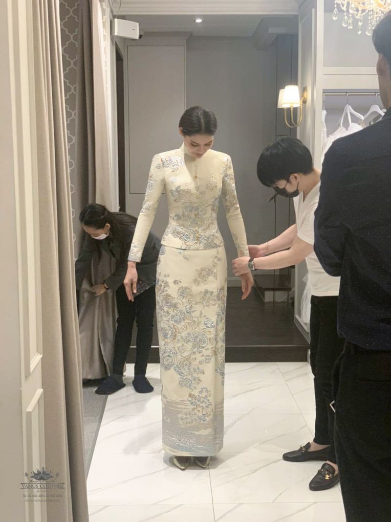 สำหรับชุดไทยจิตรลดาชุดนี้ได้รับแรงบันดาลใจในการในการสรรค์สร้างผลงานมาจาก ฉลองพระองค์ของสมเด็จพระนางเจ้าสิริกิติ์ พระบรมราชินีนาถ พระบรมราชชนนีพันปีหลวงโดยได้ มิสเตอร์ ปิแอร์ บัลแมง ( Mr.Pierre Balmain ) ดีไซเนอร์ชาวฝรั่งเศสเป็นผู้ออกแบบและตัดเย็บให้ โดยส่วนใหญ่เลือกใช้ผ้าไหม JACQUARD นำมาเป็นวัตถุดิบหลักในการตัดเย็บ ซึ่งครั้งนี้ทางห้องเสื้อเองก็ได้เลือกใช้ผ้าไหม SILK JACQUARD ด้วยเช่นกัน โดยสีที่เลือกใช้นั้นเป็น สีครีมขาว ยกดอกให้นูนเด่นด้วยดิ้นสีทองและสีบรอนซ์อมฟ้านำเข้ามาจากประเทศอิตาลี ตัดเย็บด้วยแพทเทิร์ลแบบฝรั่งเศส เพิ่มความหรูหราด้วยการประดับด้วยเม็ดกระดุมทองฝังเพชรซีกสำหรับผ้า SILK JACQUARD เป็นการทอแบบพิเศษและมีเอกลักษณ์เฉพาะ ซึ่งในเมืองไทยยังไม่สามารถผลิตเองได้จึงต้องสั่งนำเข้ามาจากประเทศอิตาลี (เนื่องด้วยผ้าชนิดนี้มีมูลค่าสูงจึงนิยมใช้กันเฉพาะกลุ่มแบรนด์ห้องเสื้อกูตูร์ระดับโลกเท่านั้น)ประดับด้วยเครื่องประดับที่ทำจากมือ กรรเจียกจรใบไม้ไหวสีทอง และ ต่างหูดอกรักที่มีกลิ่นอ่อนเฉพาะของทางห้องเสื้อโดยเฉพาะ เรียกได้ว่าสาวพรฟ้าสวยงดงามตั้งแต่หัวจรดเท้าจริง ๆ งานนี้ต้องรอลุ้นว่าสาวงามคนนี้จะคว้ามงมาได้สมใจหรือไม่ มาร่วมลุ้นร่วมเชียร์เพื่อเป็นกำลังใจให้เธอคนนี้กันต่อไปกันค่า