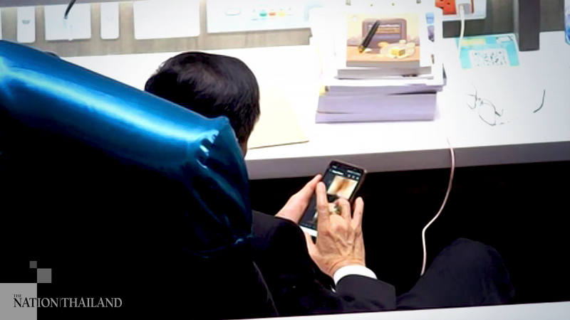 Palang Pracharat Party MP Ronnathep Anuwat complained that someone was attempting to defame him after he was pictured looking at an adult video during a Parliament meeting on the Budget Procedures Act draft yesterday (September 16).