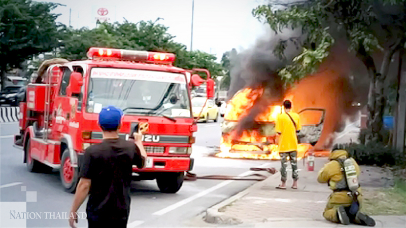 Nongyao Sitthiyot, 55, told police that she was heading from Nonthaburi’s Bang Yai district to a garage in Bangkok’s Bang Khae district. She said as soon as she saw signs of the vehicle’s engine having problems, she parked to ask people for help.