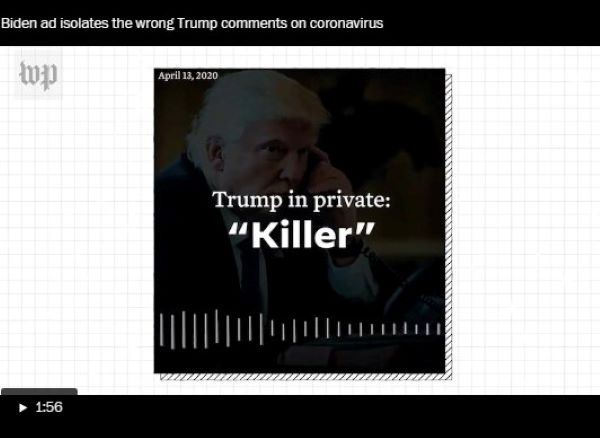 The Biden ad uses three examples of misleading material. Trump has played down the virus, compared it to the flu on many occasions, and presented a different perspective to Woodward in private, so there was no need for the Biden campaign to use isolated or clipped video.