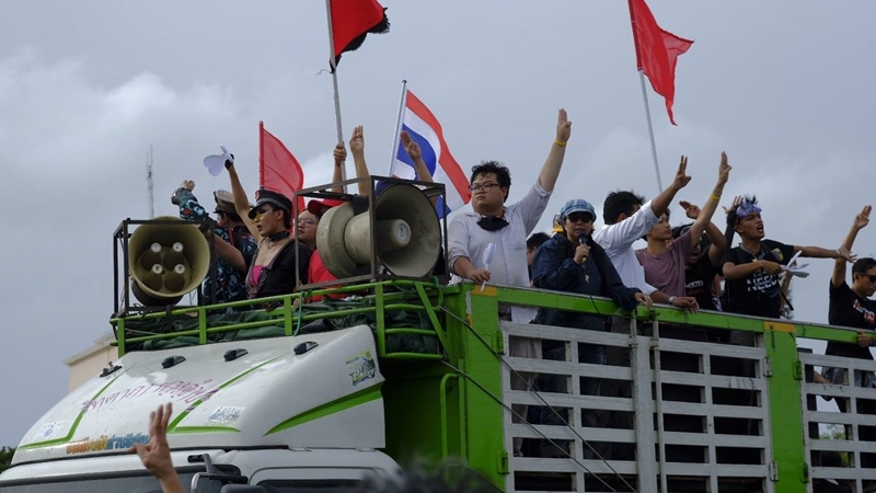 Protesters defy Thammasat ban and surge into football field for mega pro-democracy rally