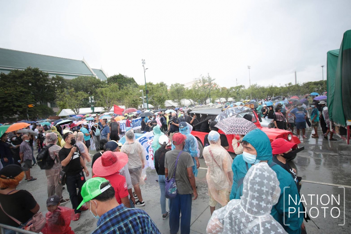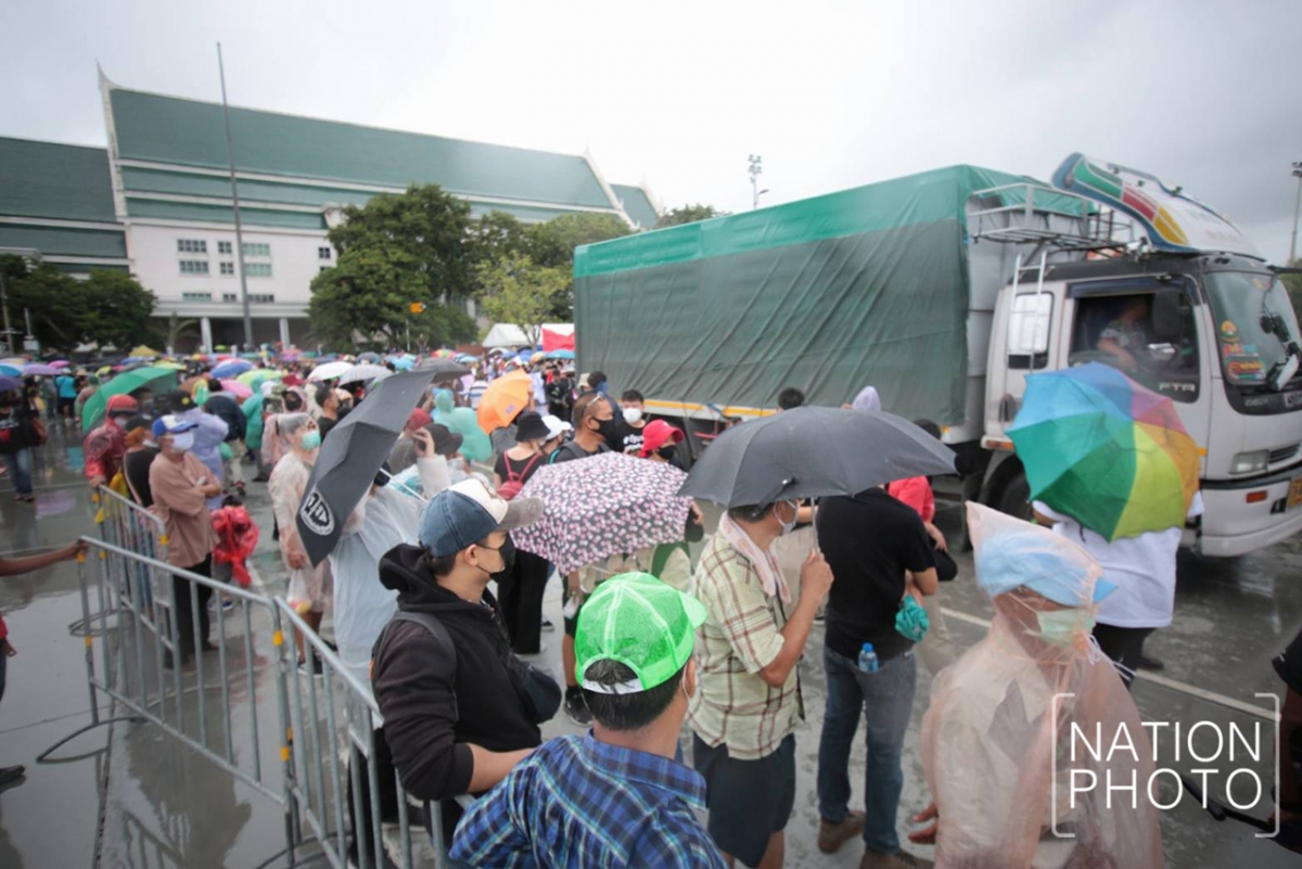 After the protesters achieved success in invading Thammasat University, they decided to hold a political rally at Sanam Luang instead because the number of protesters had increased.