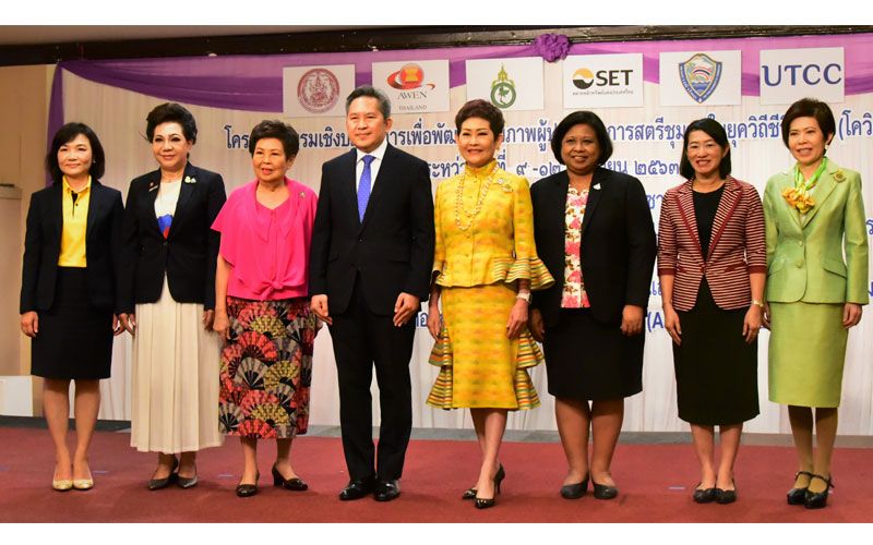 ในการอบรมเชิงปฏิบัติการครั้งนี้ ได้รับเกียรติจาก ดร.ปรเมธี วิมลศิริ ปลัดกระทรวงการพัฒนาสังคมและความมั่นคงของมนุษย์ กล่าวเปิดงานและบรรยายพิเศษ เรื่อง “มองเศรษฐกิจไทยภายหลังโควิด – 19 : ผลกระทบต่อสตรีในหลากหลายมิติ” โดยมี คุณหญิงณัฐิกา วัธนเวคิน อังอุบลกุล ประธานเครือข่ายผู้ประกอบการสตรีอาเซียนแห่งประเทศไทย และประธานสหพันธ์สมาคมสตรีนักธุรกิจและวิชาชีพแห่งประเทศไทย ในพระบรมราชินูปถัมภ์ กล่าวต้อนรับและแนวทางการเรียนรู้