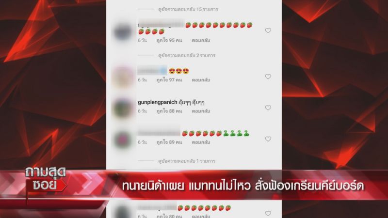 ทนายนิด้า : “เห็นข้อความด่าว่าเป็นโสเภณีบ้าง ผู้หญิงขายตัว ดอกไม้รูปสีเหลือง ด่าพ่อล่อแม่ พูดไปถึงเรื่องบนเตียง ซึ่งไม่มีใครรู้จริงอยู่แล้ว แต่ไปเมนต์รุนแรง แล้วคนโพสต์รูปสตรอว์เบอร์รี่คิดว่าเขาหมายถึงอะไร อย่าพูดเลยว่าเป็นการอยากทานผลไม้ เราย่อมรู้อยู่แล้วว่าสตรอว์เบอร์รี่ เป็นการด่าคน”