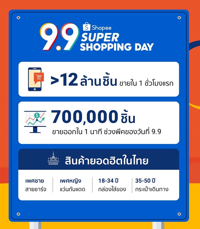 ขณะที่แคมเปญ Shopee 9.9 SuperShopping Day ที่ให้ผู้ใช้งานสนุกพร้อมรับรางวัล จากคอลเลคชั่นเกมบนแอพพลิเคชั่นช้อปปี้โดยเฉพาะกับเกม Shopee Farm ที่มีการชวนเพื่อนมาร่วมรดน้ำต้นไม้มากถึง 250 ล้านครั้ง