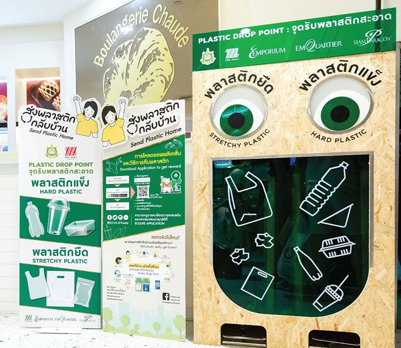 สำหรับโครงการบริการนำขยะพลาสติกสะอาดกลับสู่กระบวนการรีไซเคิลได้ติดตั้งจุดคัดแยกขยะพลาสติกแบ่งเป็น2 ประเภท ได้แก่ 1.เครื่อง PlasticMonster (Plastic Drop Point)เป็นจุดคัดแยก พลาสติกยืดหรือพลาสติกแข็งที่ทำความสะอาดเรียบร้อยแล้ว มาส่งมอบที่ตู้ The Mall Group Plastic Monster(Plastic Drop Point) โดยตลอดเดือนกันยายน 2563 มีกิจกรรมต้อนรับวันโอโซนโลก เพียงถ่ายรูปลง Facebook และ #TheMall Group Go Green ลุ้นรับกล่องถนอมอาหารได้ทุกสัปดาห์ ณ บริเวณชั้น 4 ดิ เอ็มโพเรียม, อาคาร Bชั้น B ดิ เอ็มควอเทียร์, ฝั่ง South ชั้น B สยามพารากอน, บริเวณชั้น Gเดอะมอลล์ รามคำแหง, ชั้น 1 เดอะมอลล์ท่าพระ, ชั้น 3 เดอะมอลล์งามวงศ์วาน, ชั้น GA เดอะมอลล์ บางแคและชั้น G เดอะมอลล์ บางกะปิ